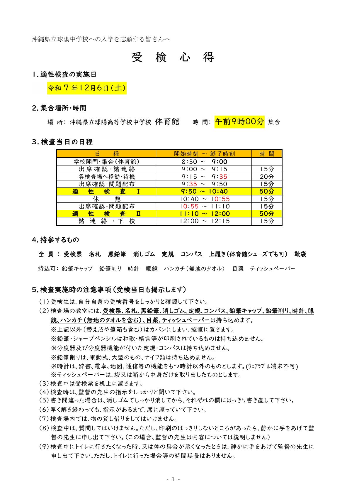 例年受検生の保護者の方が球陽中学校近隣の路上や商業施設に駐車し地域の皆様にご迷惑をおかけしている事例があります。短時間でも、駐停車は近隣にお住まいの方へのご迷惑になります。また、事故の原因にもなりますのでご遠慮くださいますようお願い申し上げます。受検日当日は警察のパトロールもあります。ご理解ご協力宜しくお願いします。